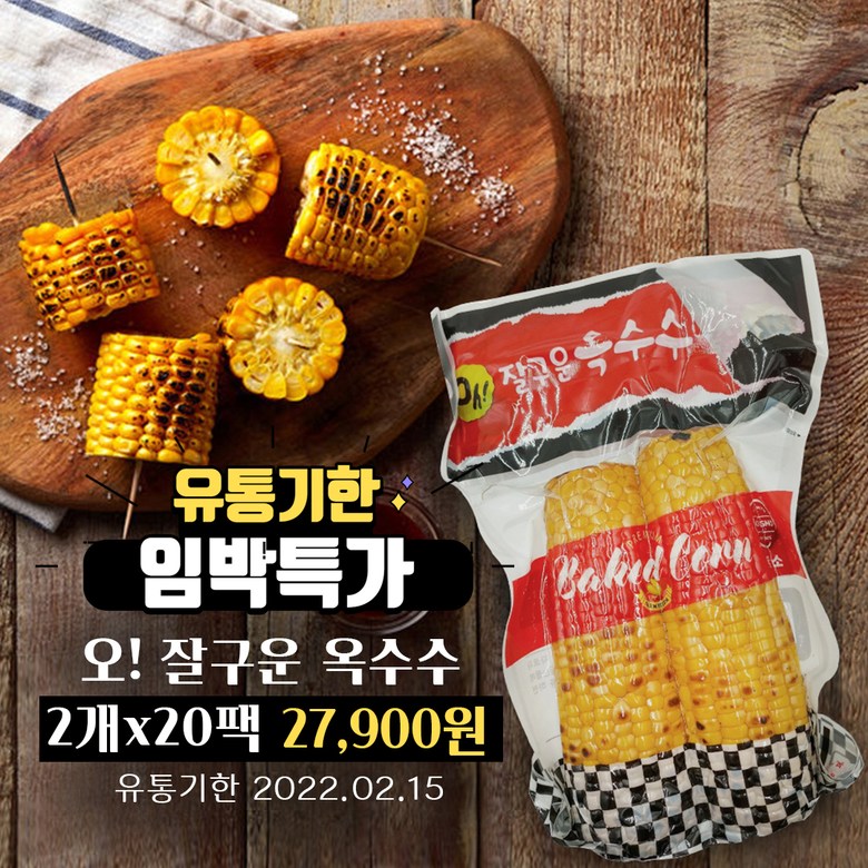 유통기한임박(2022.02.15까지)구운 옥수수 2개X20팩 / 편의점옥수수