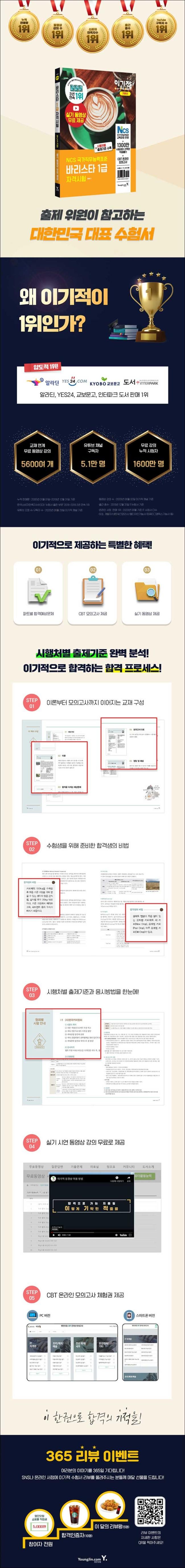 | 도서명 | [영진닷컴]이기적 바리스타 1급 자격시험 기본서 : 실기 시연 동영상 제공 + CBT 온라인 모의고사 제공 |