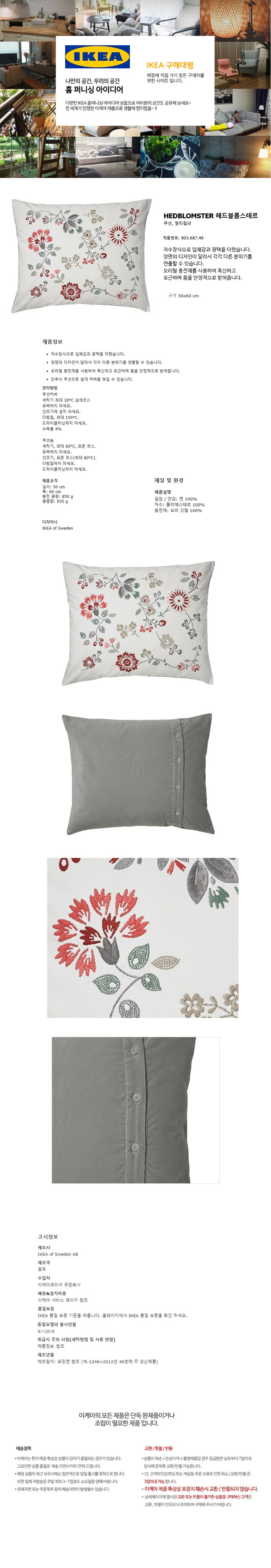 이케아 HEDBLOMSTER 헤드블롬스테르 쿠션 (쿠션커버+오리털충전제 포함가) 50×60 자수쿠션 단추쿠션 803.687.49
