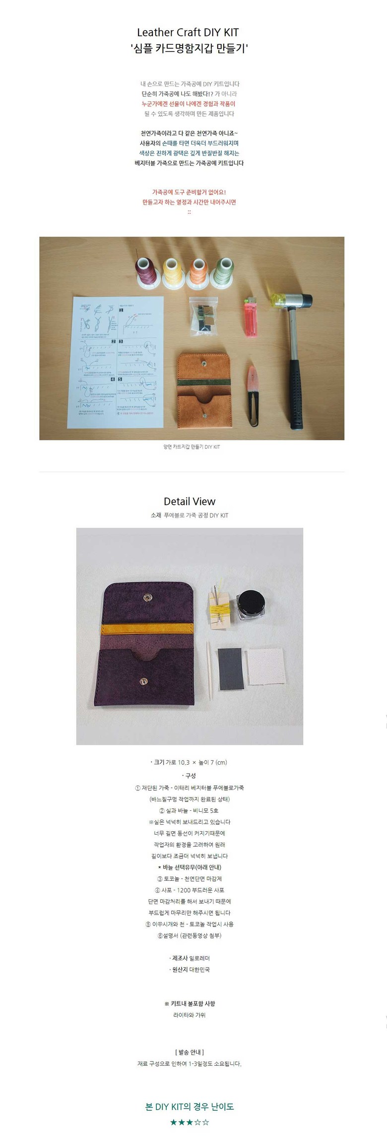 일로레더 심플카드지갑 만들기 가죽공예키트 DIY 이니셜각인, 진밤,와인, Free