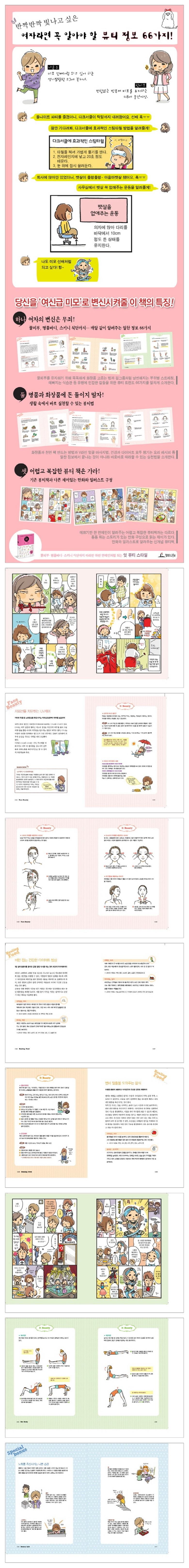 | 목차 또는 책소개(아동용 학습 교재의 경우 사용연령을 포함) | 꿀피부·명품바디·스키니 식단까지 따라만 하면 연예인처럼 되는 『잇 뷰티 스타일』. 예뻐지고자 하는 여성들의 뷰티 고민을 해결해줄 수 있는 현실적이고 실현 가능한 66가지 뷰티 방법을 알려준다. 생활 속에서 자주 경험하는 에피소드를 만화로 표현하여, 더 쉽게 뷰티 정보를 공감하며 이해할 수 있도록 하였다. 잘 관리하고 싶지만 방법을 몰라서 헤매는 뷰티 상식들을 페이스 뷰티, 힐링 푸드, 핫 바디, 뷰티 라이프, 마인드 뷰티의 5장으로 구성하여 제시한다. |