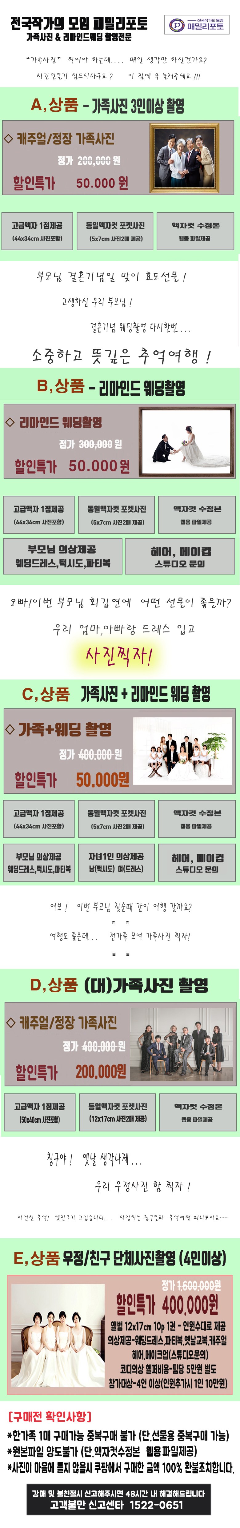[전국]패밀리포토 리마인드웨딩 50%~ 80% 사진촬영, C상품-가족사진+리마인드웨딩촬영
