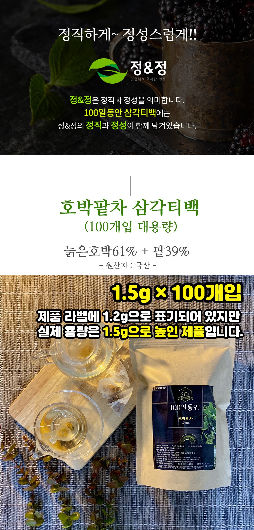 정앤정 100일동안 호박팥차 삼각티백, 1.5g, 100개