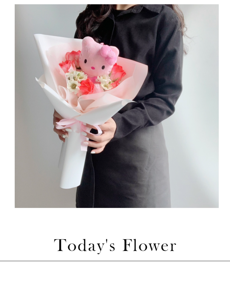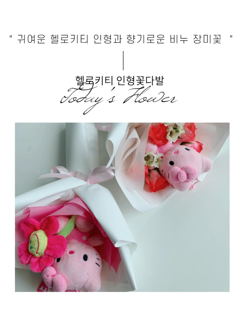 정품 핑크 헬로키티 인형 비누꽃다발, 인형+비누꽃, 선택안함