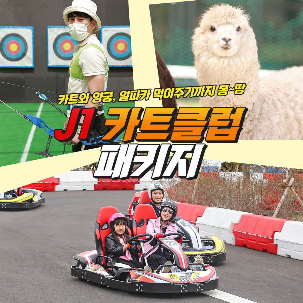 [제주시] |제주|J1 카트클럽 패키지+혜택몰빵|제주여행|카트|양궁|알파카먹이주기|제주시내|공항근처