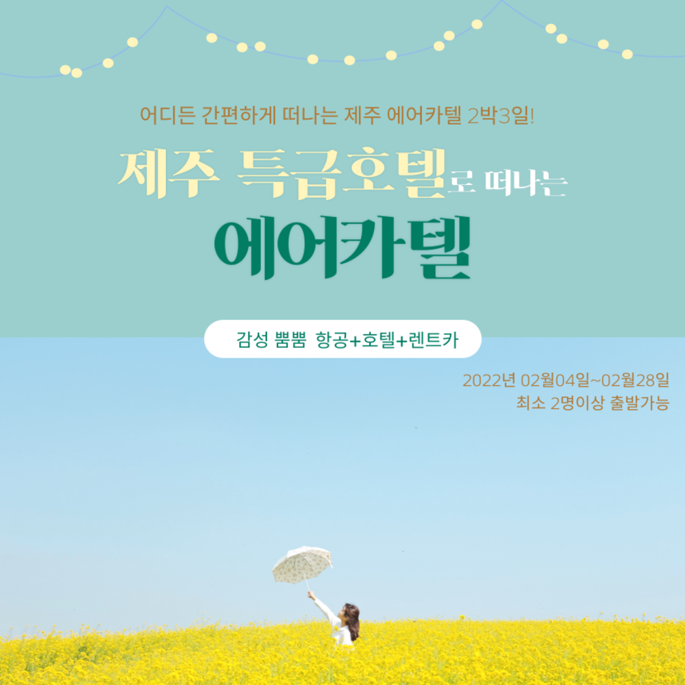 [제주] 제주도 자유여행 에어카텔 2박3일(항공권+특급호텔+렌트카)