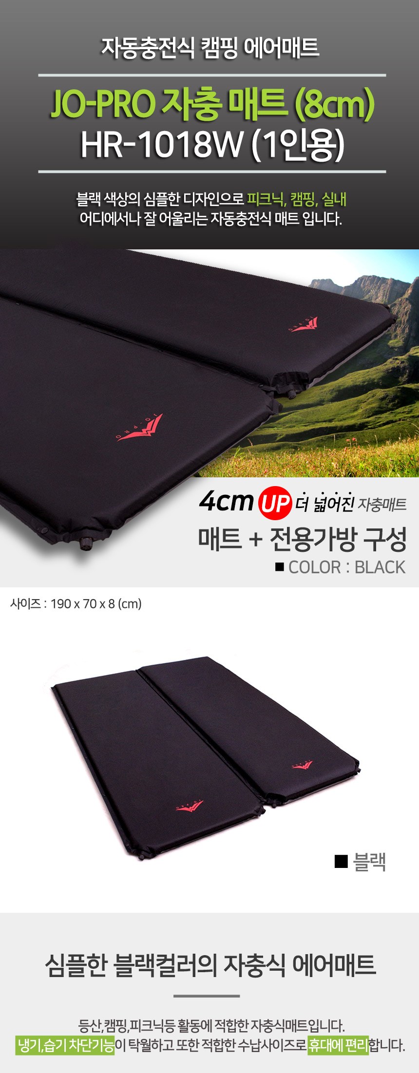 조프로 자충매트 1인용 + 전용가방 + 수리패치 HR-1018W, 블랙