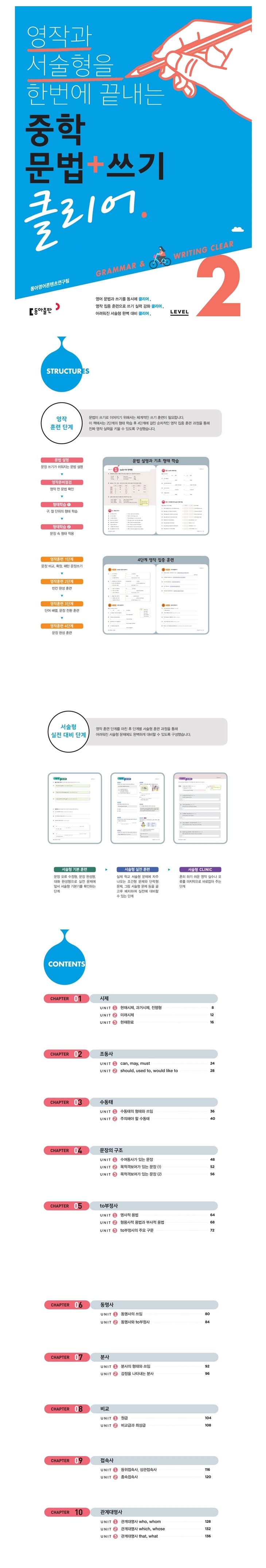 | 도서명 | 영작과 서술형을 한번에 끝내는 중학 문법+쓰기 클리어 Level. 2 |