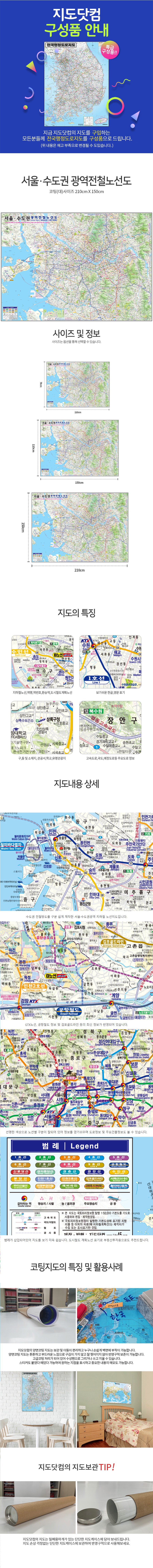 지도닷컴 서울 수도권 광역 전철 노선도 코팅형 210 x 150 cm + 전국 행정 도로 지도 세트, 1세트