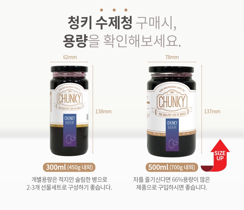 청키 수제 생 블루베리청 수제청 과일청, 1개, 700g, 500ml