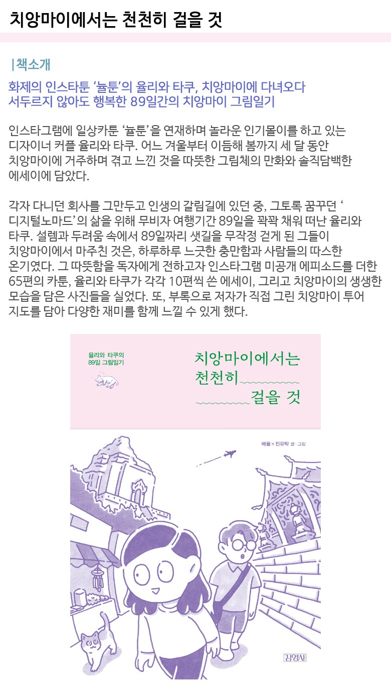 치앙마이에서는 천천히 걸을 것:율리와 타쿠의 89일 그림일기, 김영사