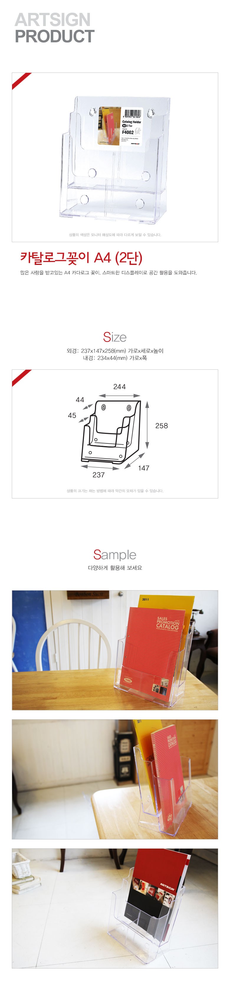 카탈로그꽂이 A4 2단 팜플렛꽂이 4578, 칸막이구매안함