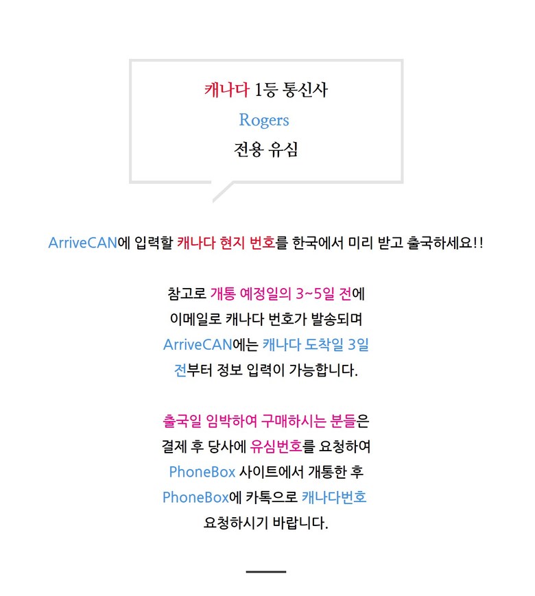 | 품명 및 모델명 | 캐나다 유심 |