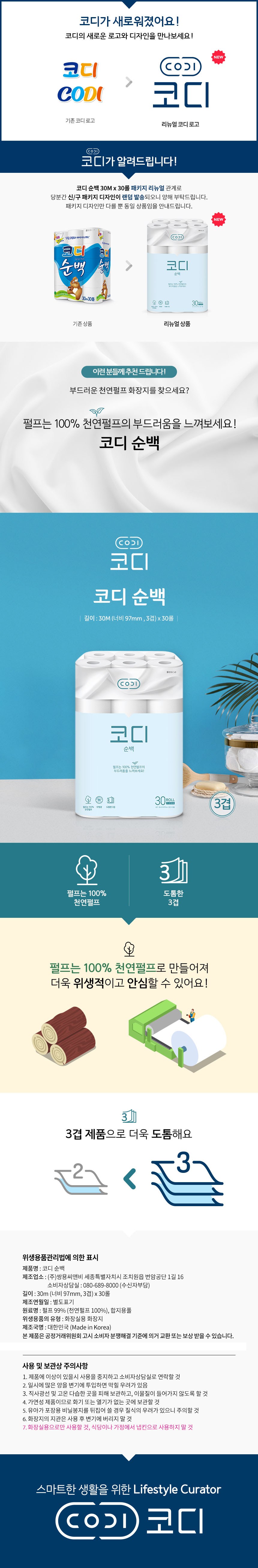 | 품명 및 모델명 | 코디 순백 3겹 펄프 롤화장지 30m |