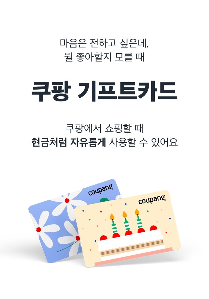 | 현금영수증 안내 | 기프트카드 구매 시점에는 현금영수증이 발급되지 않고, 쿠팡캐시 사용 시점에 사용자에게 발급 |