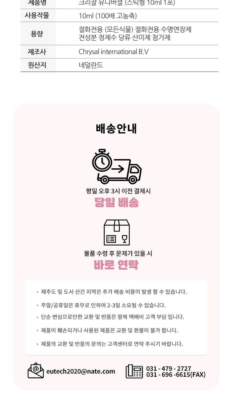 | 제조자(수입자) | 농업회사법인 우리화훼종묘(주) |