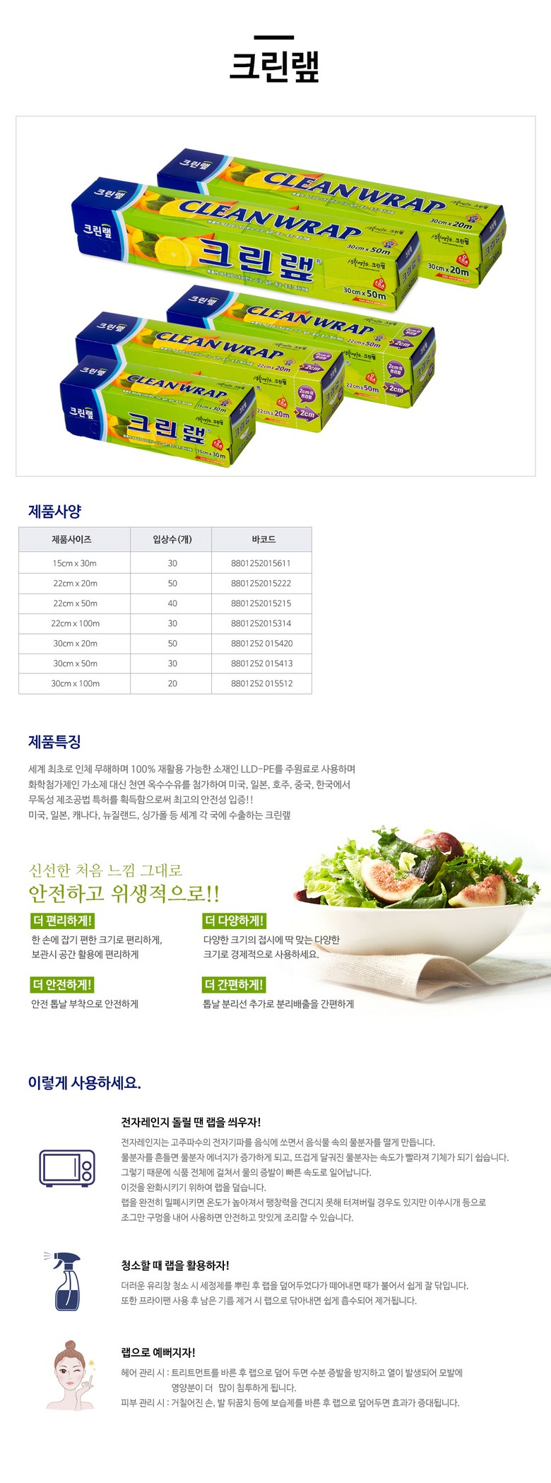 | 품명 및 모델명 | 크린랩 22 cm x 50 m |