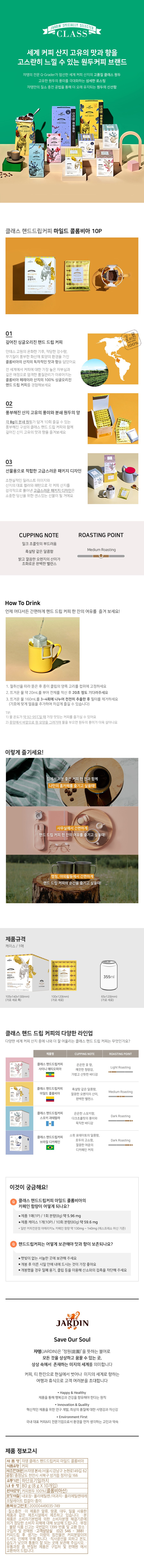 클래스 쟈뎅 핸드드립커피 마일드 콜롬비아, 8g, 10개