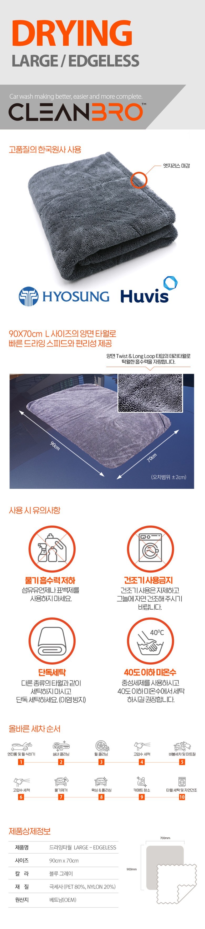 클린브로 양면 드라잉타월 원패스 주황테두리