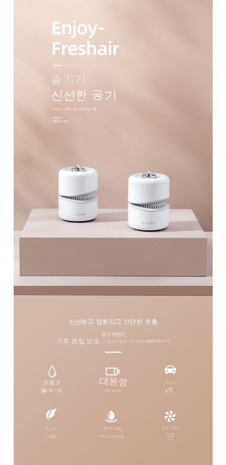 티아오 미니정화기 가정용 음이온 발생기 휴대용 공기청정기 JHQ0003, 흰색
