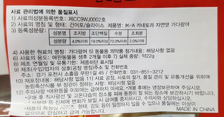 | 제조자(수입자) | 펫모닝(펫모닝) |
