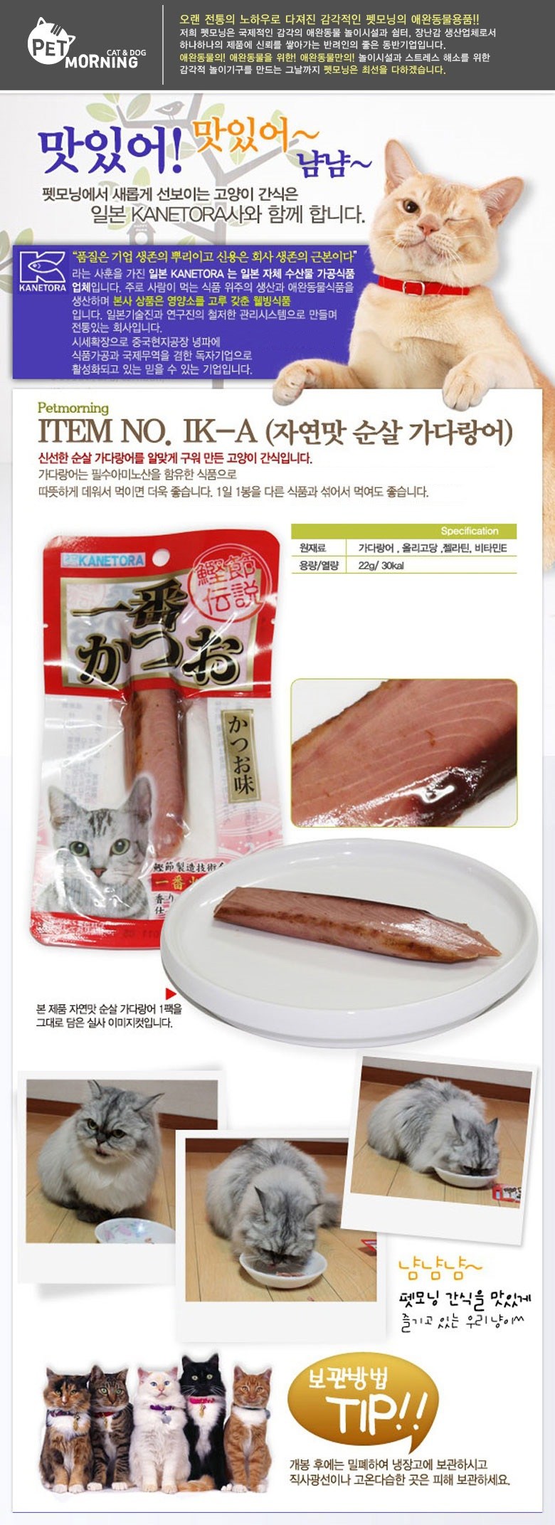 | 품명 및 모델명 | [IK-A] 카네토라 자연맛 순살 가다랑어 22g x 48개 |