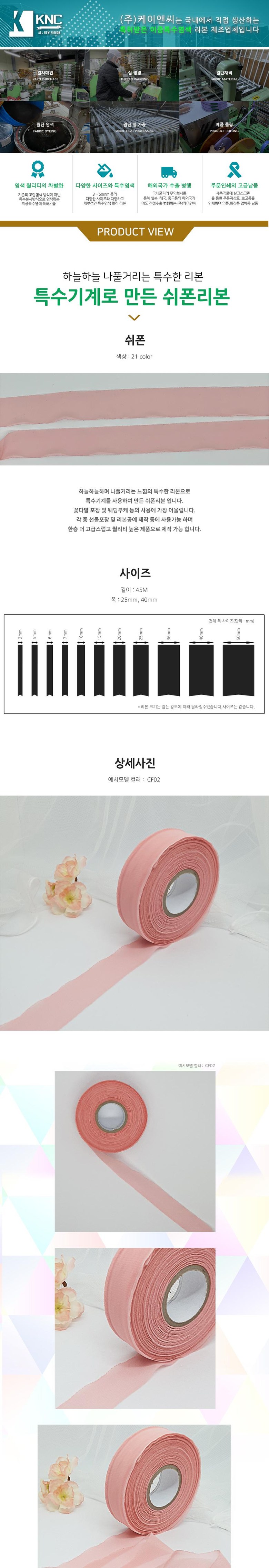 포장 리본 끈 쉬폰리본 25mm 연가지색 45M