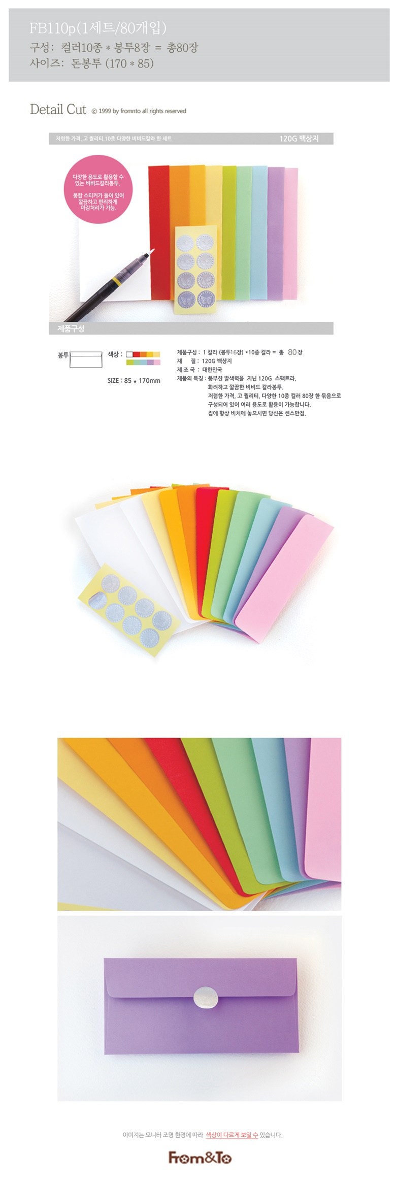 프롬앤투 돈봉투 10종 컬러 x 8p 세트 FB110p, 혼합 색상, 1세트