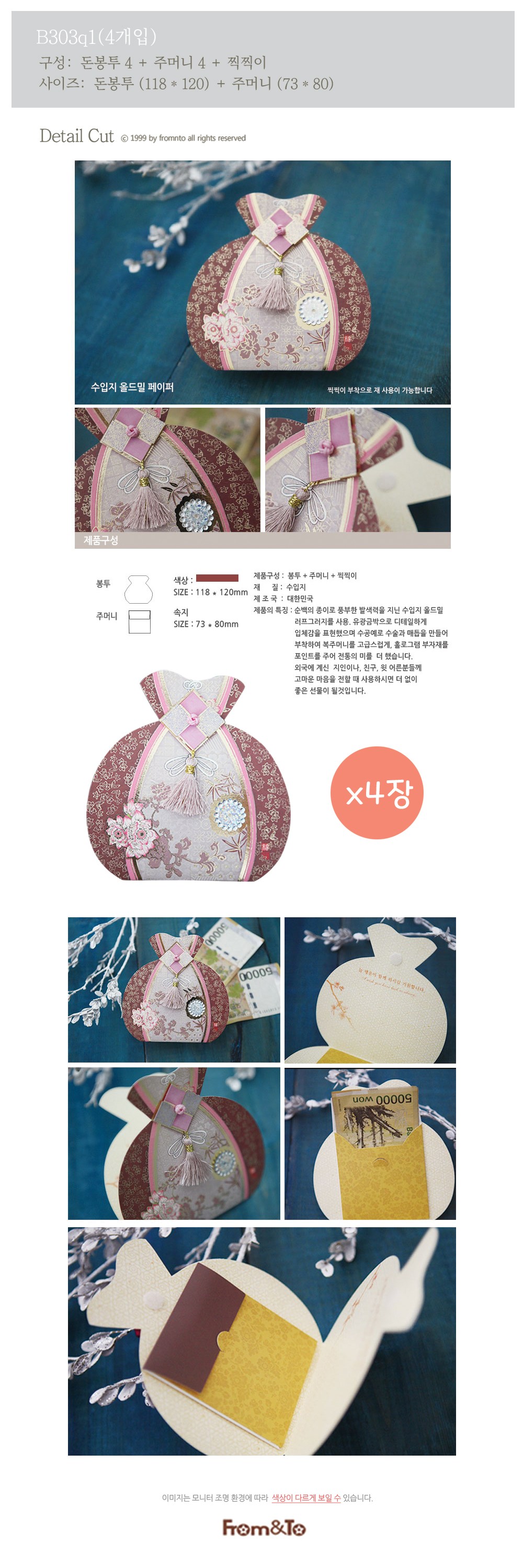 프롬앤투 용돈봉투 B303q1, 혼합 색상, 4개입