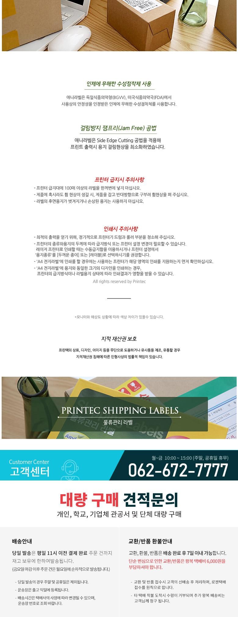 프린텍 애니라벨 물류관리 라벨 100매, V3110F-100(1칸)칼선없음