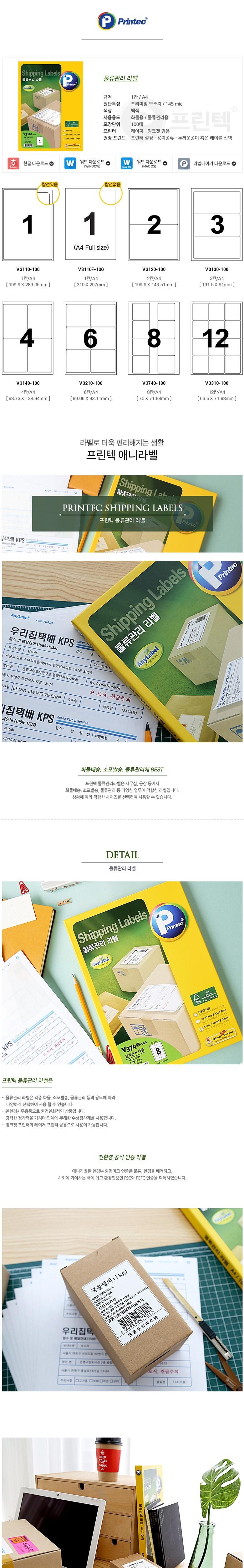 [묶음발송 가능 상품/옵션선택시]V3110-100매(1칸 1등분 A4전지) 프린텍물류관리라벨[5시이전 당일발송], V3570-100(216칸)