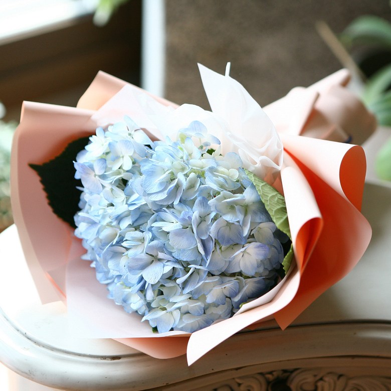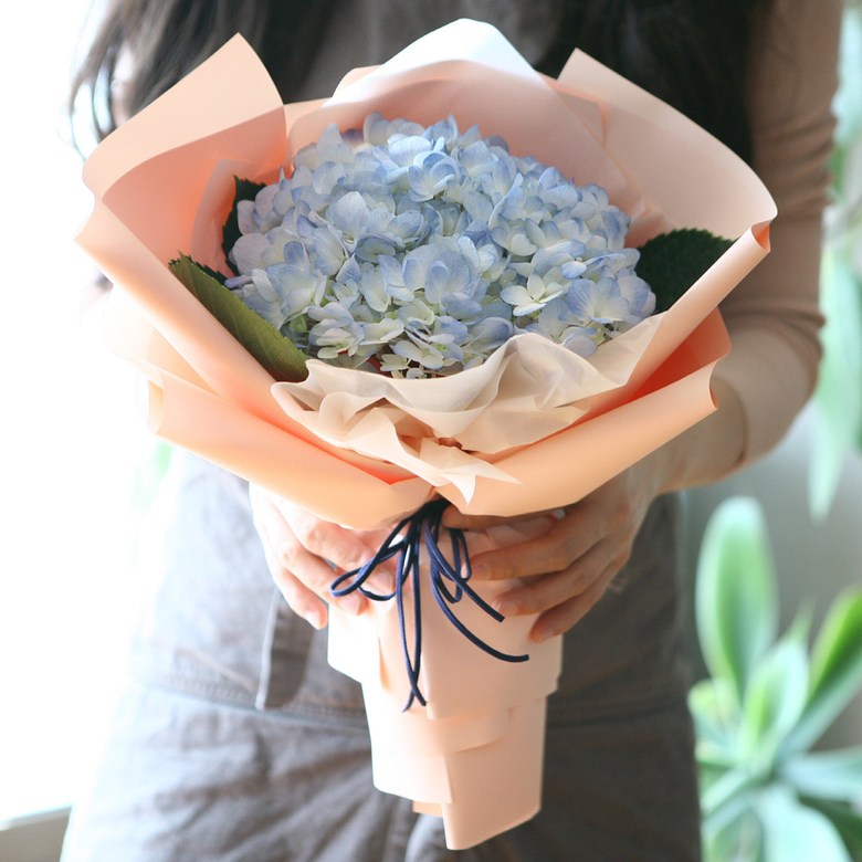 [플라워테일] 수국 꽃다발 생화택배 꽃정기구독 전국꽃배달 서비스 여자친구 와이프 부모님 생신 생일 결혼기념일 100일 200일 1주년 선물, 블루수국(생화)