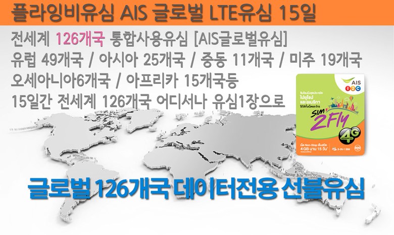플라잉비 두바이유심 15일 LTE 6GB 126개국지원, 1개, 15일 LTE 4GB