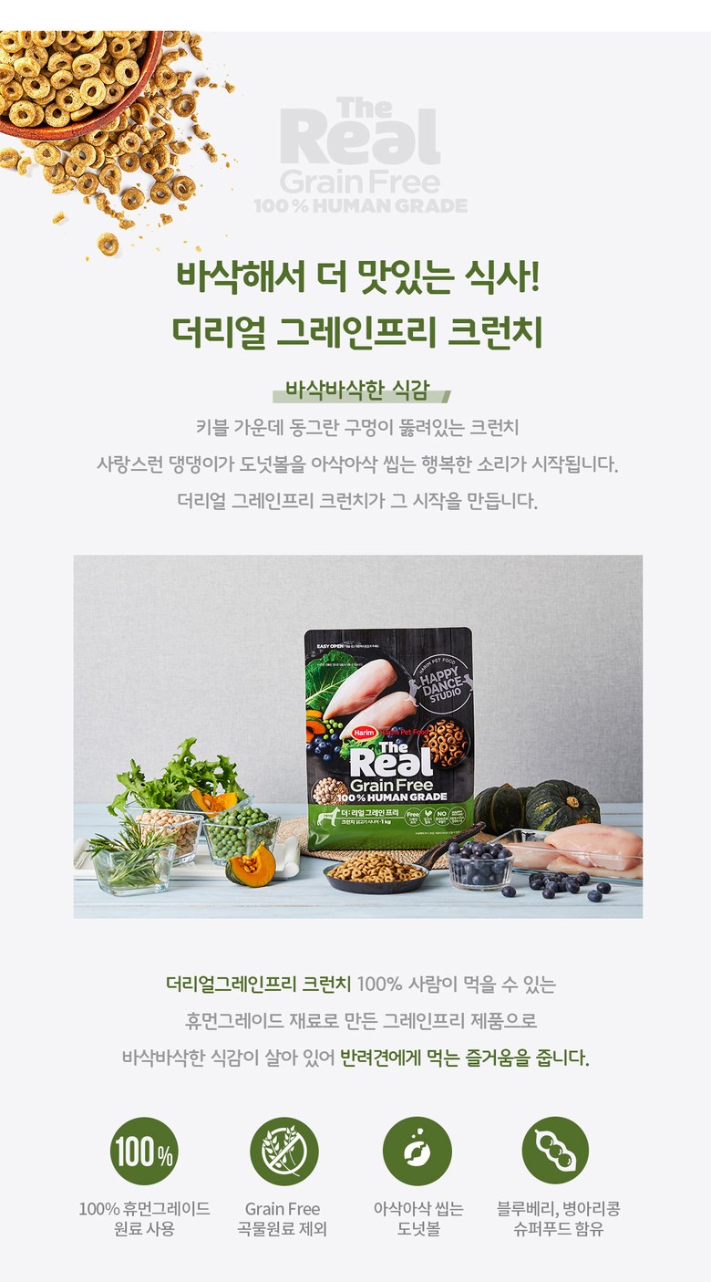 하림 더리얼 그레인프리 크런치 시니어(닭고기) 1kg 강아지사료