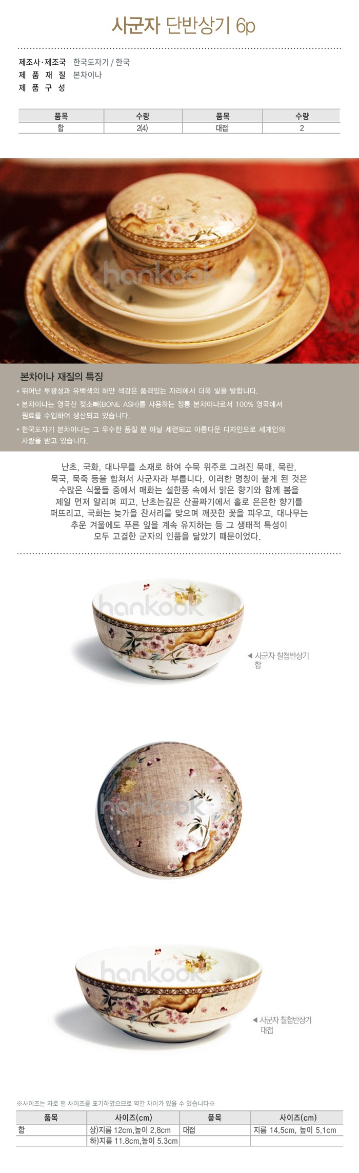 | 품명 및 모델명 | 한국도자기 사군자 단반상기 |