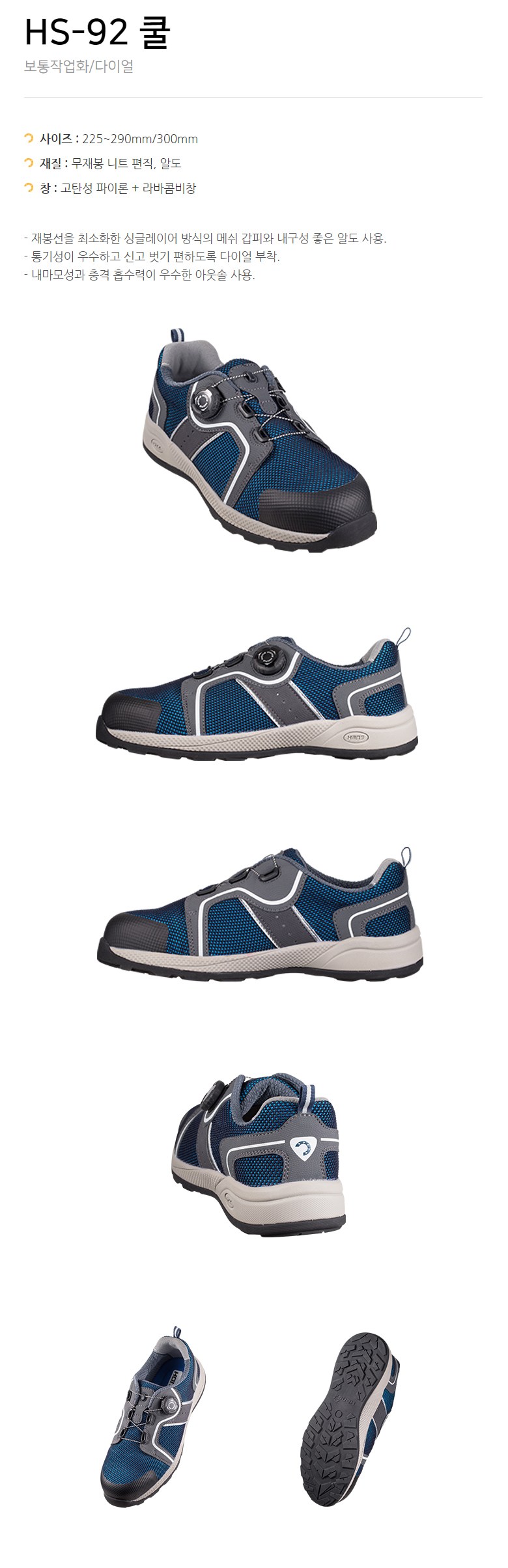 한스 HS-92 쿨 다이얼 안전화 보통작업용 작업화