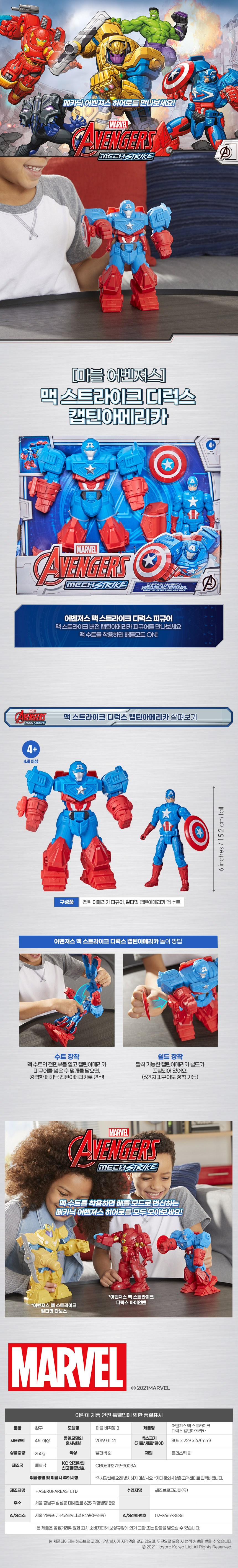 품명 및 모델명 어벤져스 맥 스트라이크 디럭스 캡틴아메리카