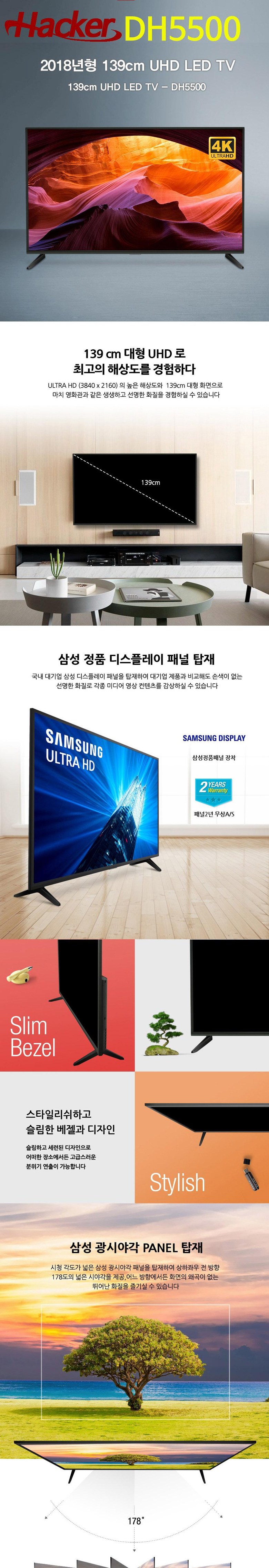 [해커씨앤씨] UHD 55인치 TV 삼성패널 본사직배송 및 벽걸이설치 (브라켓포함), DH 5500 55인치 TV벽걸이(브라켓포함)