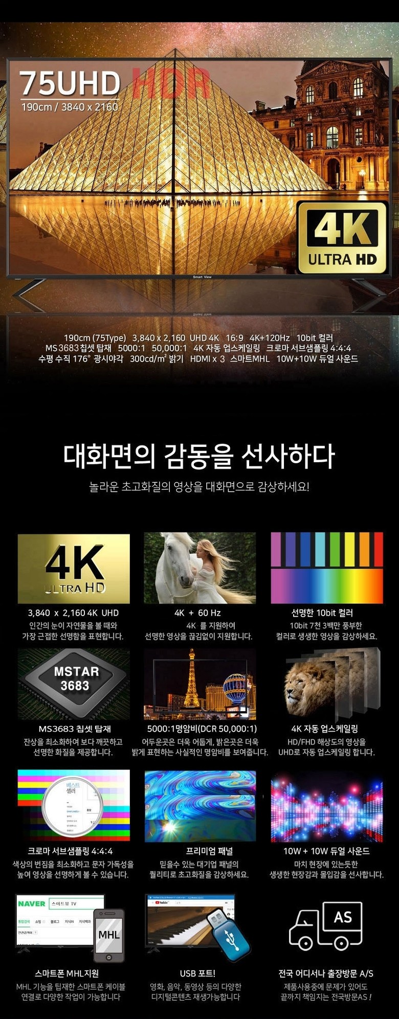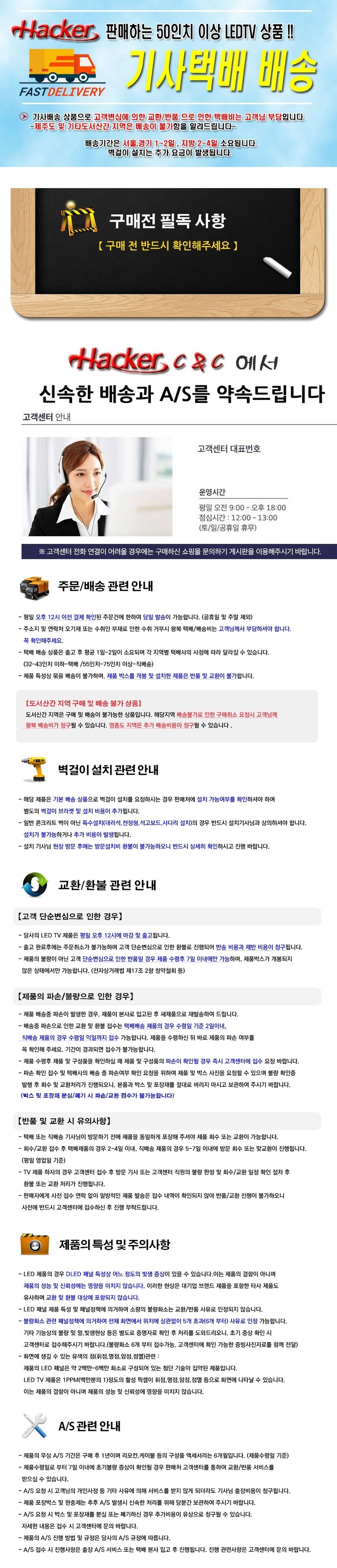 해커 75인치 UHD TV 정품패널 스탠드형 벽걸이형, 자가설치