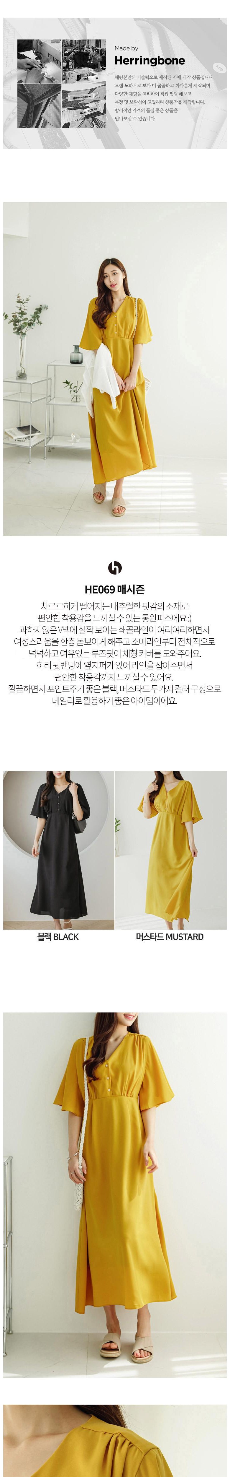 헤링본 여성 여름 롱원피스 반팔 브이넥 프릴 허리밴딩 플레어 루즈핏 빅사이즈 데일리 휴양지 바캉스룩 HE069