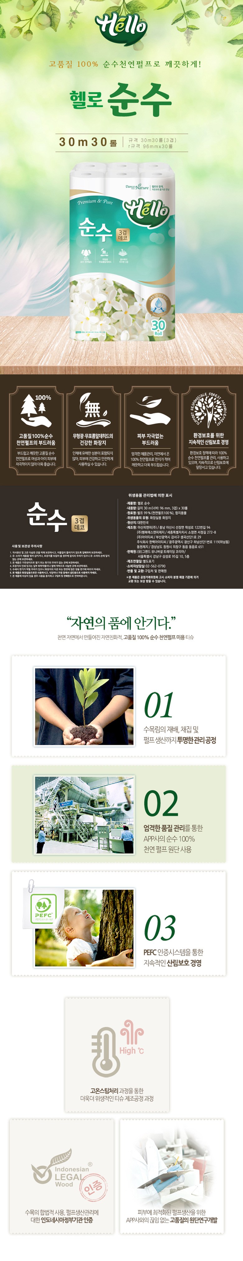 품명 및 모델명 헬로 순수 천연펄프 30m 30롤
