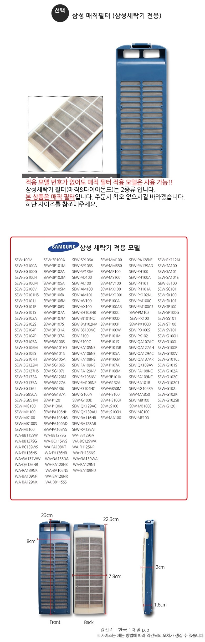 홍대슈퍼 삼성 세탁기전용 매직필터 거름망 세탁망, 1개