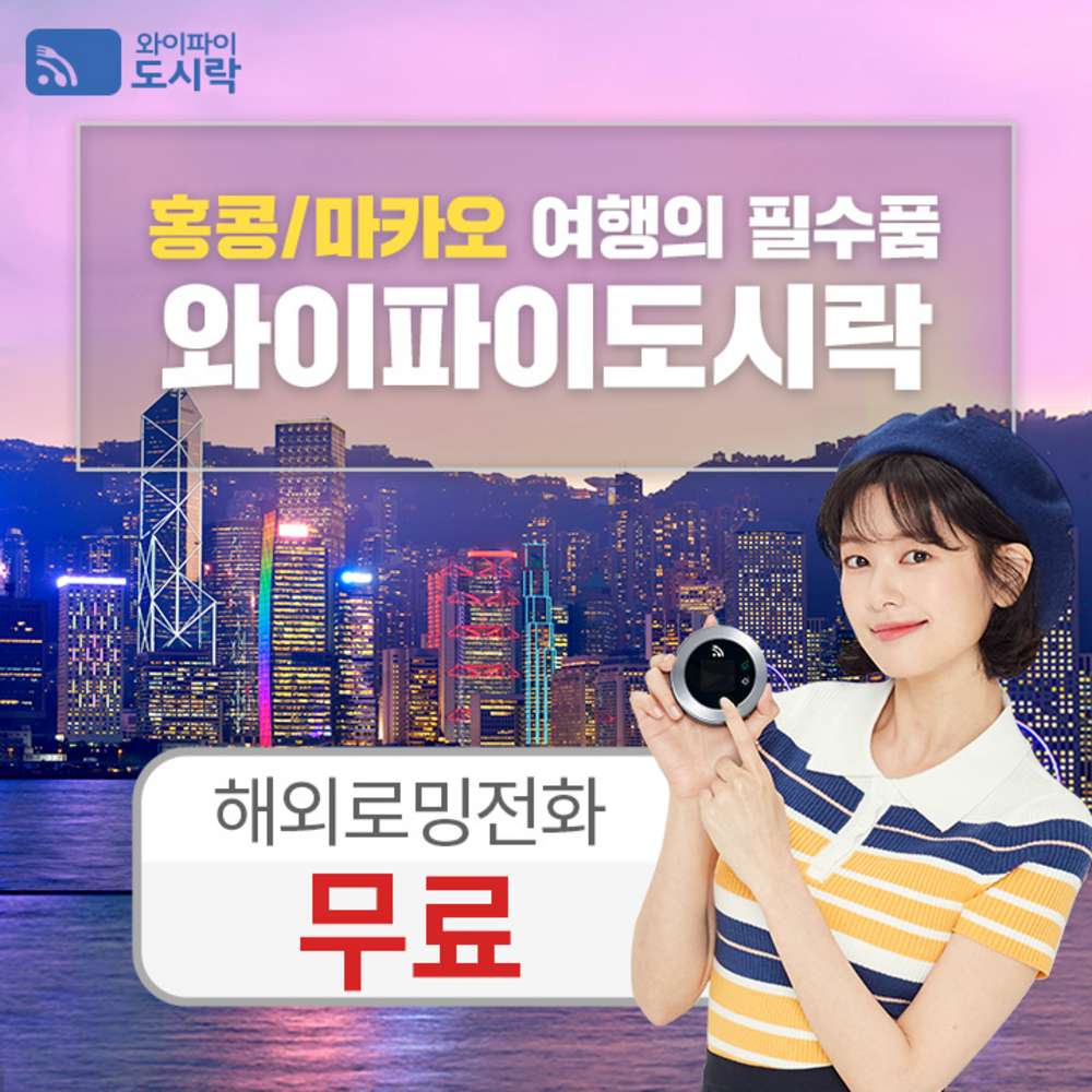 [홍콩/마카오] 홍콩 마카오(일1.5GB)포켓와이파이 와이파이도시락 4GLTE 해외로밍전화 무료