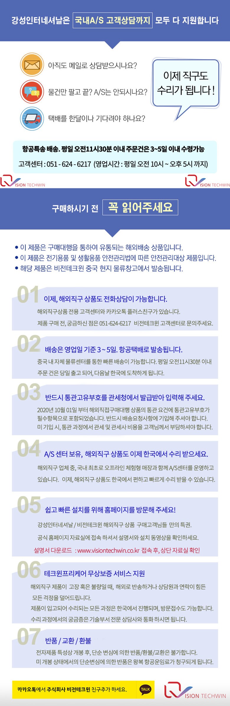 | A/S 책임자와 전화번호 | 해외직구상품의 경우, 단순 변심에 의한 반품, 교환, 환불이 절대 불가능 합니다. (부득이한 사유로 인해 환불하실 경우, 왕복 항공운임료 40,000원이 청구됩니다.)또한, 제품을 당사에서 수령한 후, 검수 하였을 때, 사은품 및 제품 외관박스와 내부 부속 그리고 본품에 재판매가 불가능할 손상이 있거나 훼손이 확인되는 경우, 제품불량 이외의 경우 어떠한 사유에서도 환불 및 반품이 불가능 한 점 유의 부탁드립니다.반드시 포장은 다른박스로 하여, 제품 및 제품 겉박스가 훼손되지 않도록 유의 부탁드립니다.또한, 사은품과 제품 본품 이외의 다른 부속 및 기타 포함상품이 훼손 , 사용흔적이 있으면 안됩니다. |