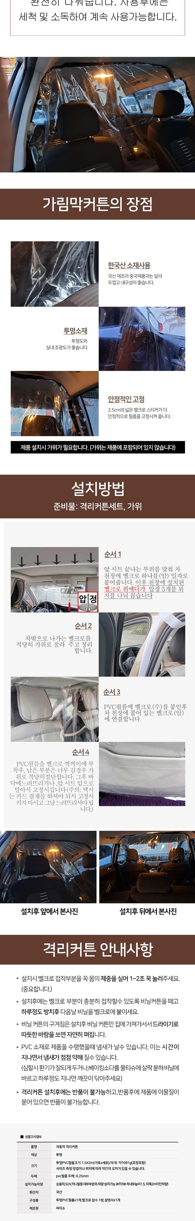 국산 자동차 택시 가림막 차량용 투명 칸막이 격리커튼 파티션 방역용품