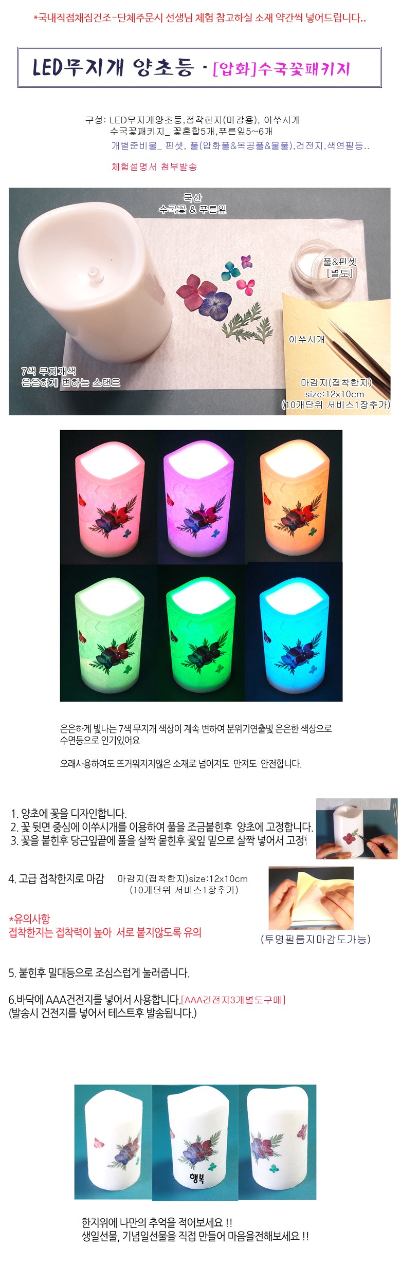 꽃누르미 압화 양초LED무지개스탠드 인테리어소품등만들기, LED무지개양초등