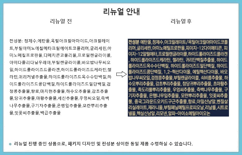 | 화장품법에 따라 기재, 표시하여야 하는 모든 성분 | 컨텐츠 참조 |