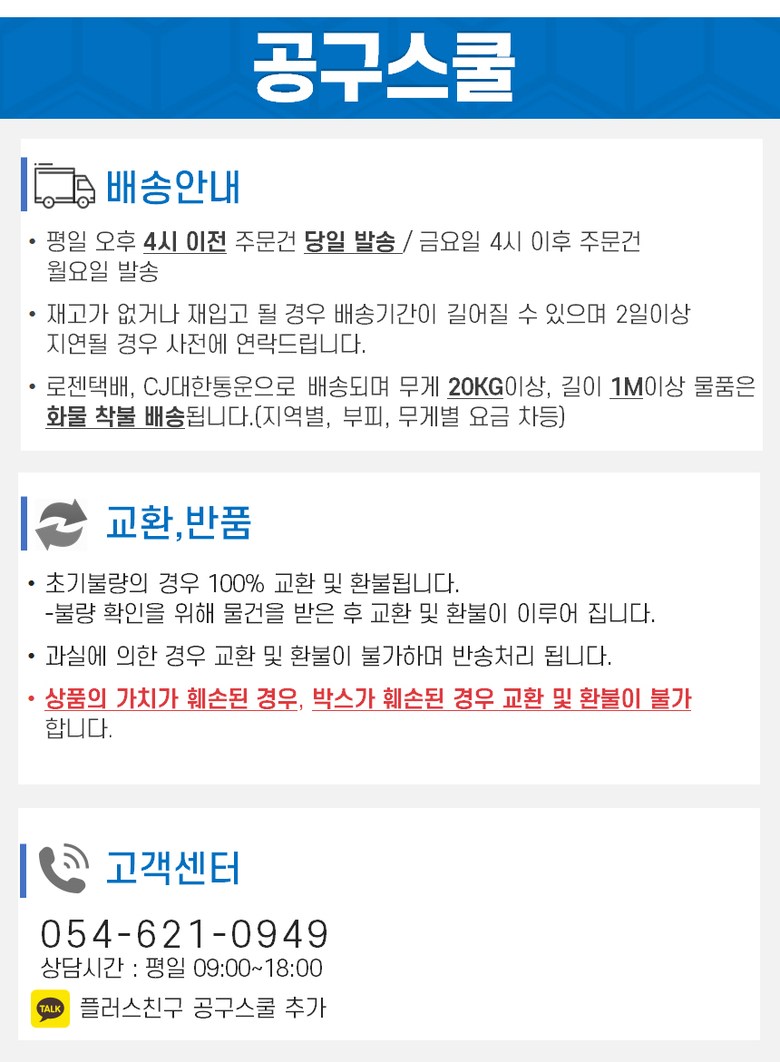 | 소비자상담 관련 전화번호 | 상품 상세페이지 참조 |