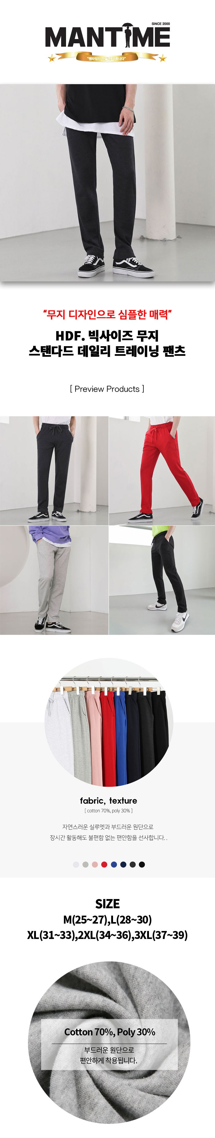 맨타임 HDF 빅사이즈 무지 스탠다드 데일리 트레이닝 팬츠