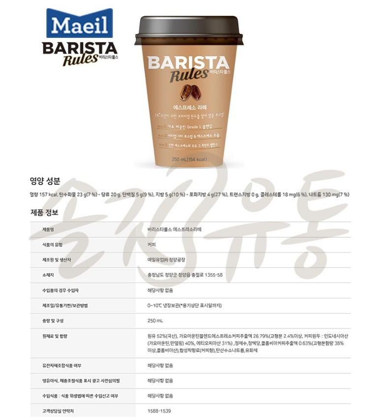 바리스타 매일유업 에스프레소라떼10컵+로슈거에스프레소라떼10컵, 20개, 250ml